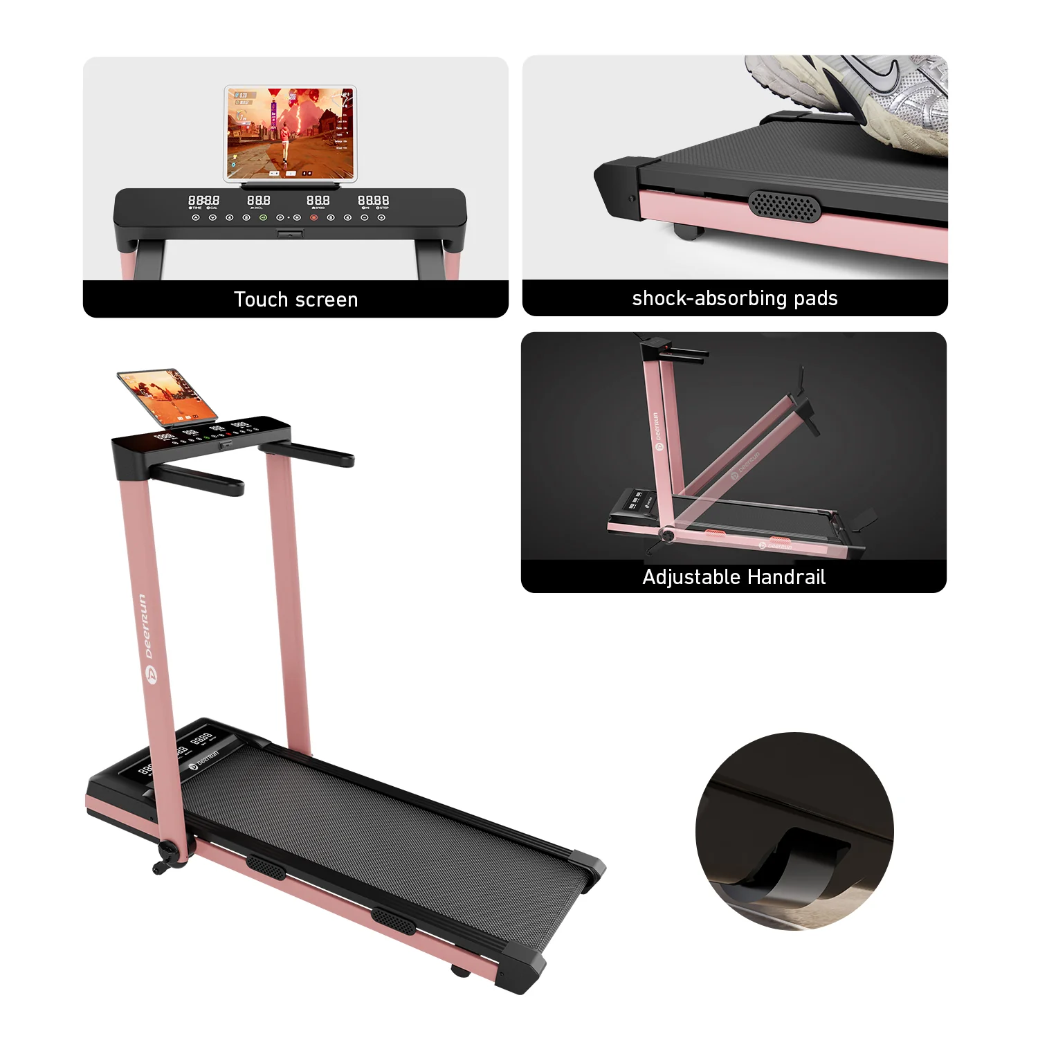 DeerRun Z10 Pro Muse Type 2 in 1 Foldable Treadmill with Remote Control, 12% Auto Incline, Pink